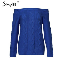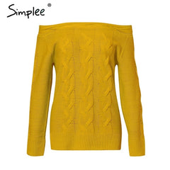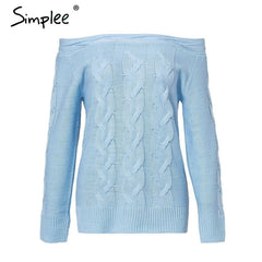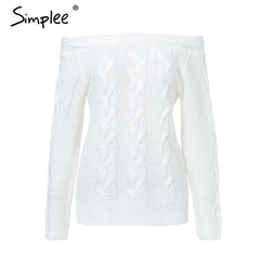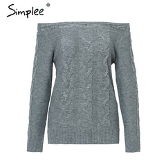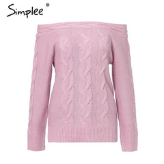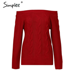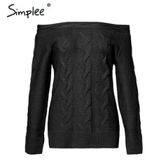 Simplee Off shoulder twist women knitted plus size sweaters Elegant slim fit pullover and sweater 2018 Autumn winter female tops